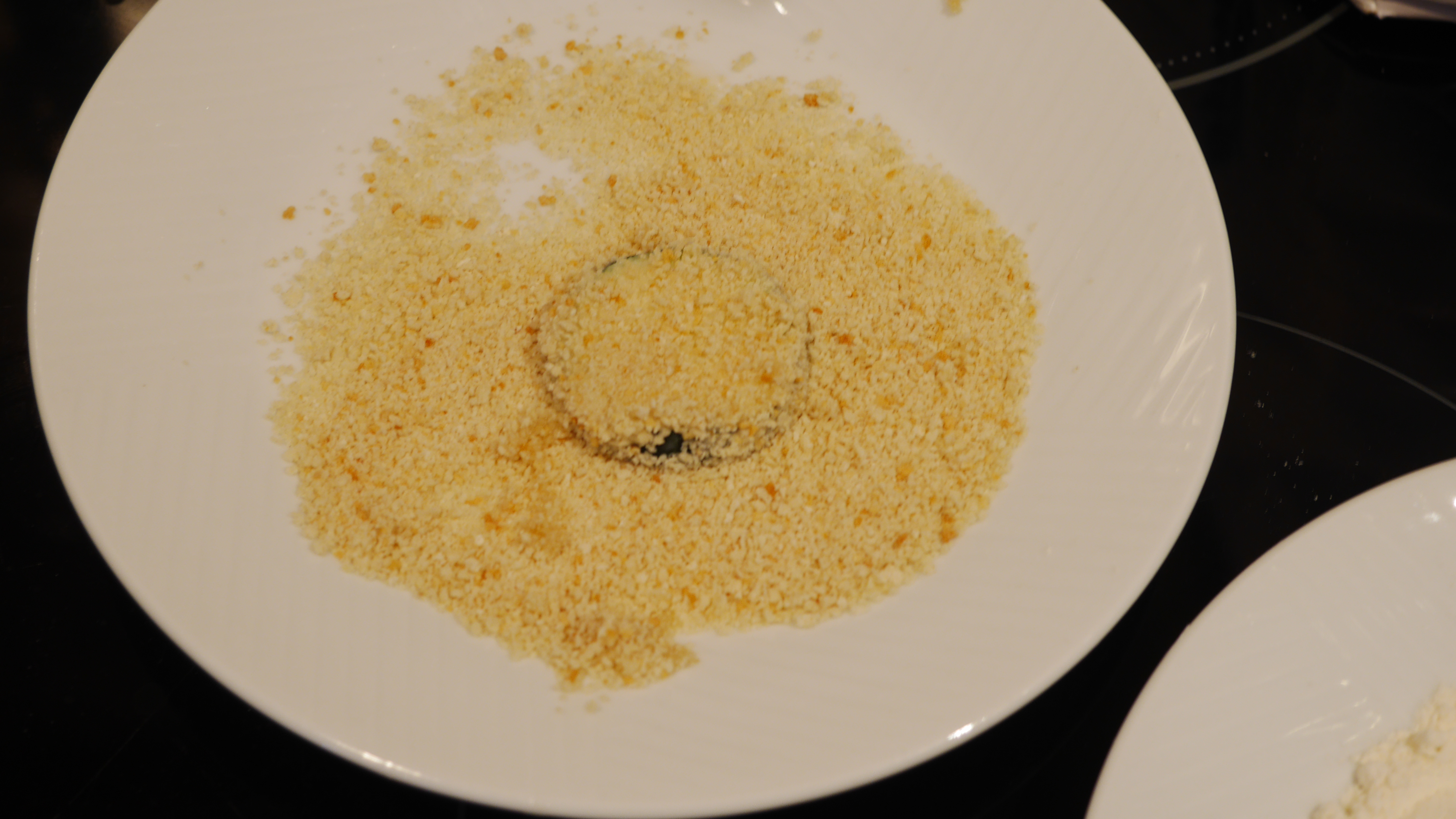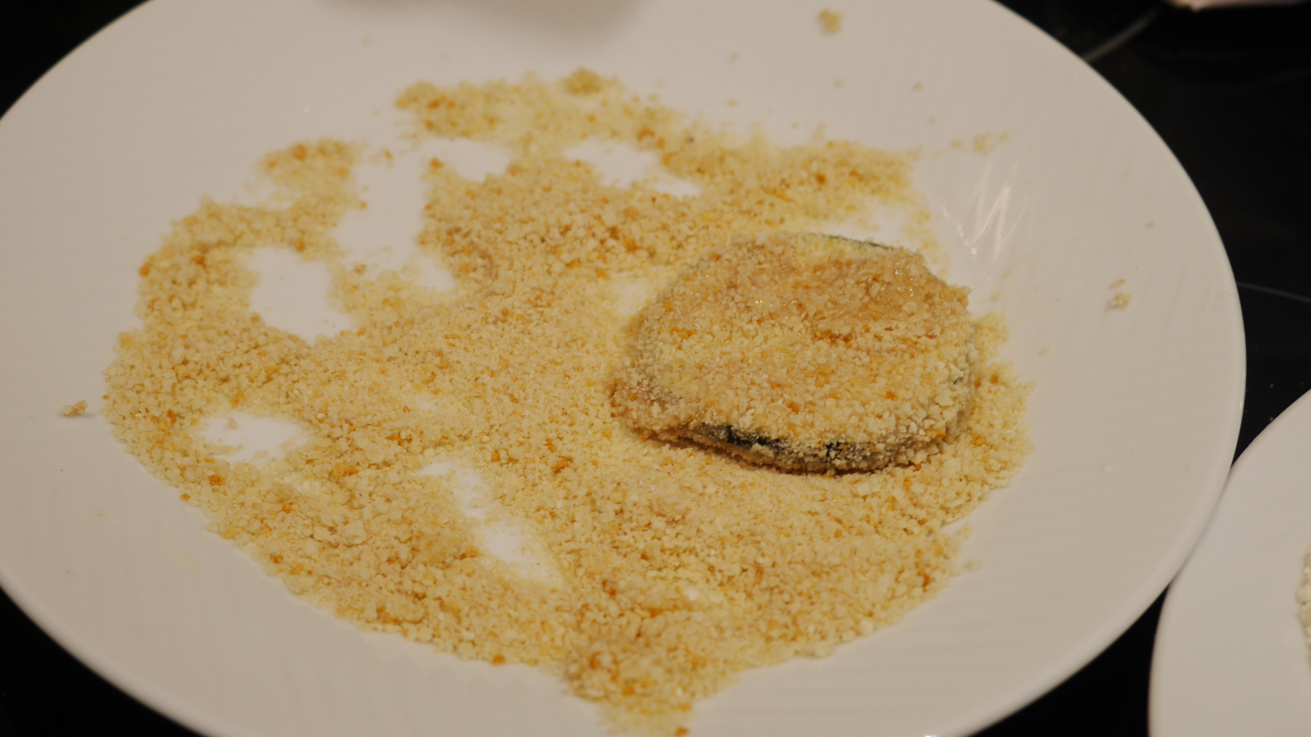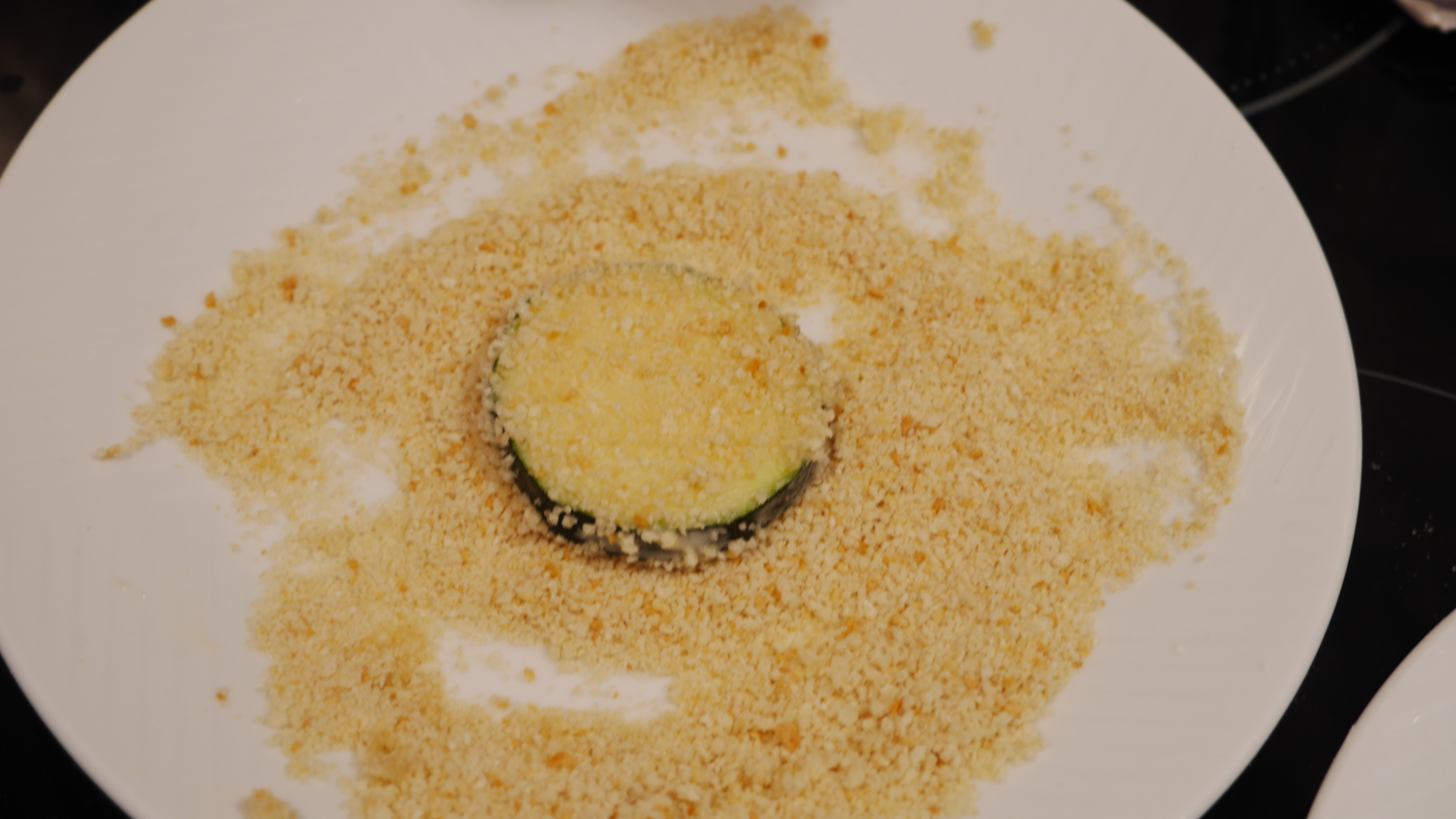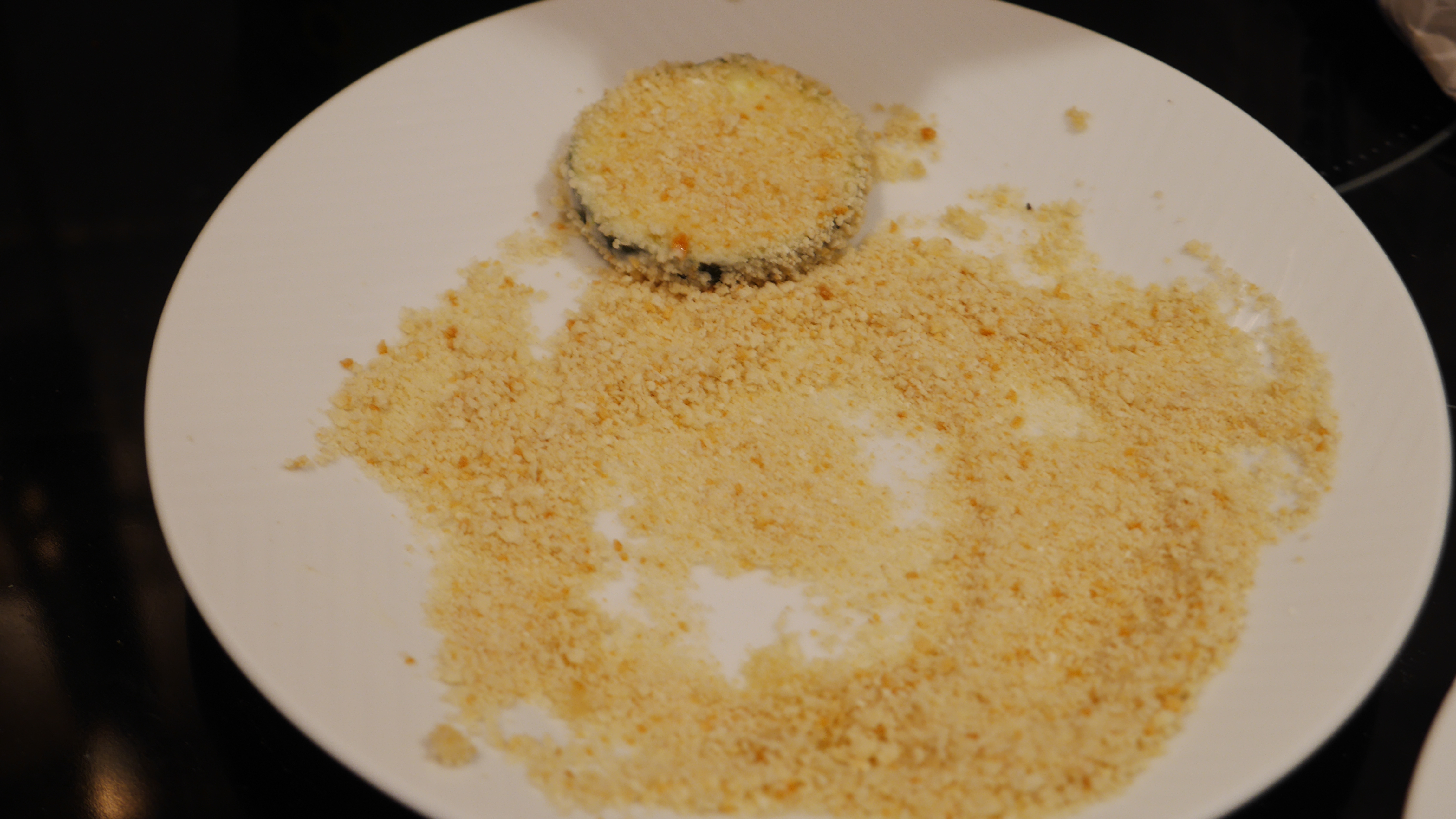 However, once I left it for a few minutes white I did the first two types of liquid, it really did look somewhat eggy. It went on to the courgette easily and the breadcrumbs stuck nicely. Unsurprisingly, the breadcrumbs stuck really well to this one, and it tasted good.