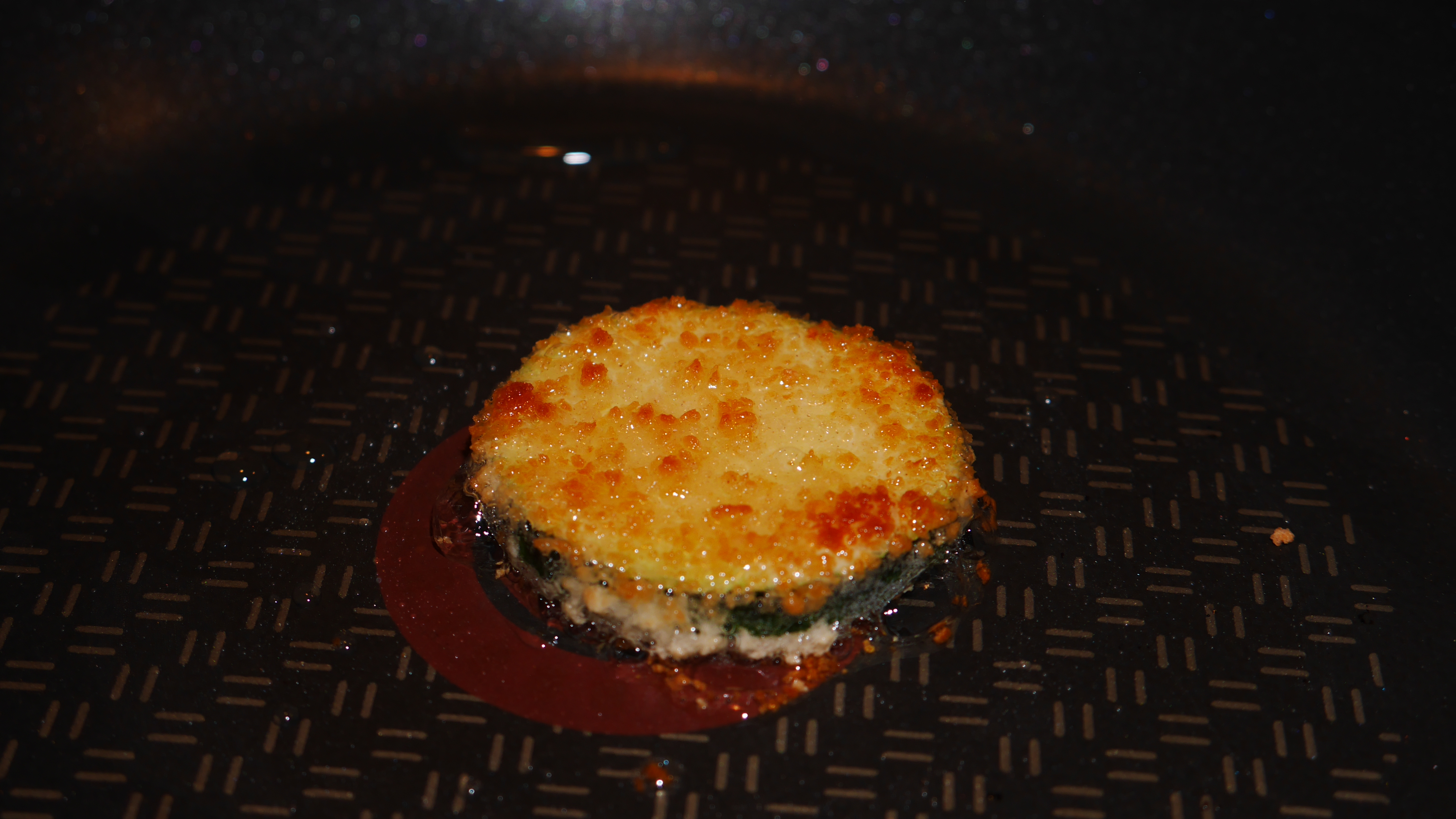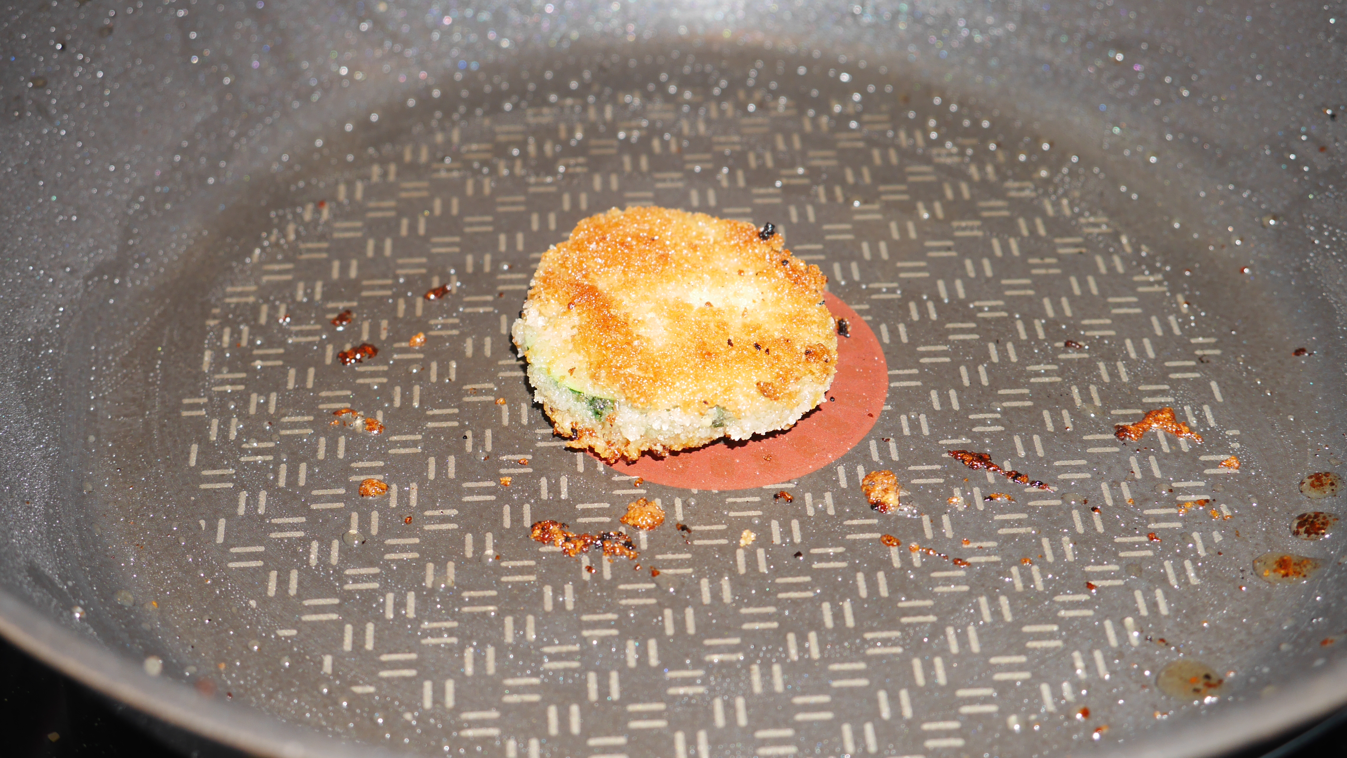 I also decided to chill the courgette to see if that would help things along. I breaded the slide and refrigerated it for about 10 minutes. This was not a good idea, and was similar to the outcome for the oil, so I really wouldn’t recommend chilling before frying.